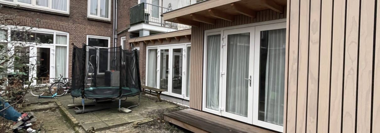 Voor deze begane grond woning in de Heesterbuurt speelde meer dan alleen de wens om te verduurzamen. De bewoners wilden ook meer ruimte, een nieuwe indeling en een betere aansluiting op hun manier van wonen. Er kwam een duurzame houten uitbouw van 45 m² met veel aandacht voor licht, verhouding en gebruik. Daarbij zijn ook duurzame keuzes meegenomen, zoals nieuwe kozijnen met HR++ glas, mechanische ventilatie, isolatie van de bestaande achtergevel, het doortrekken van de vloerverwarming en een groen dak met bloemenmix.