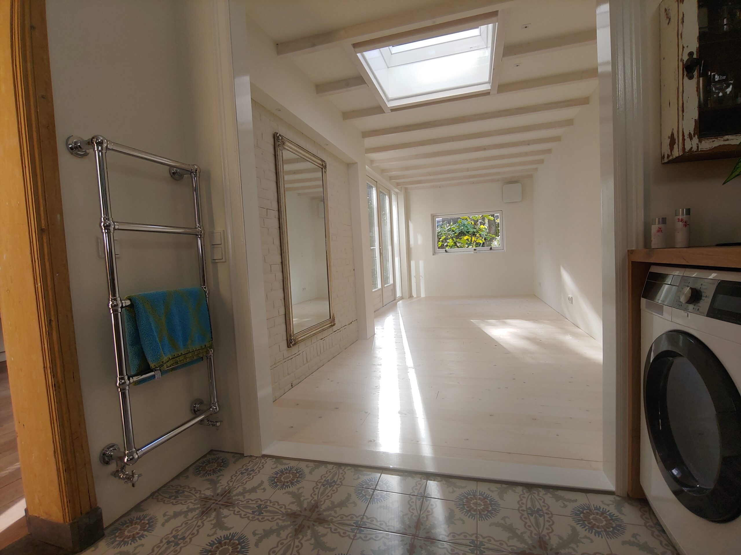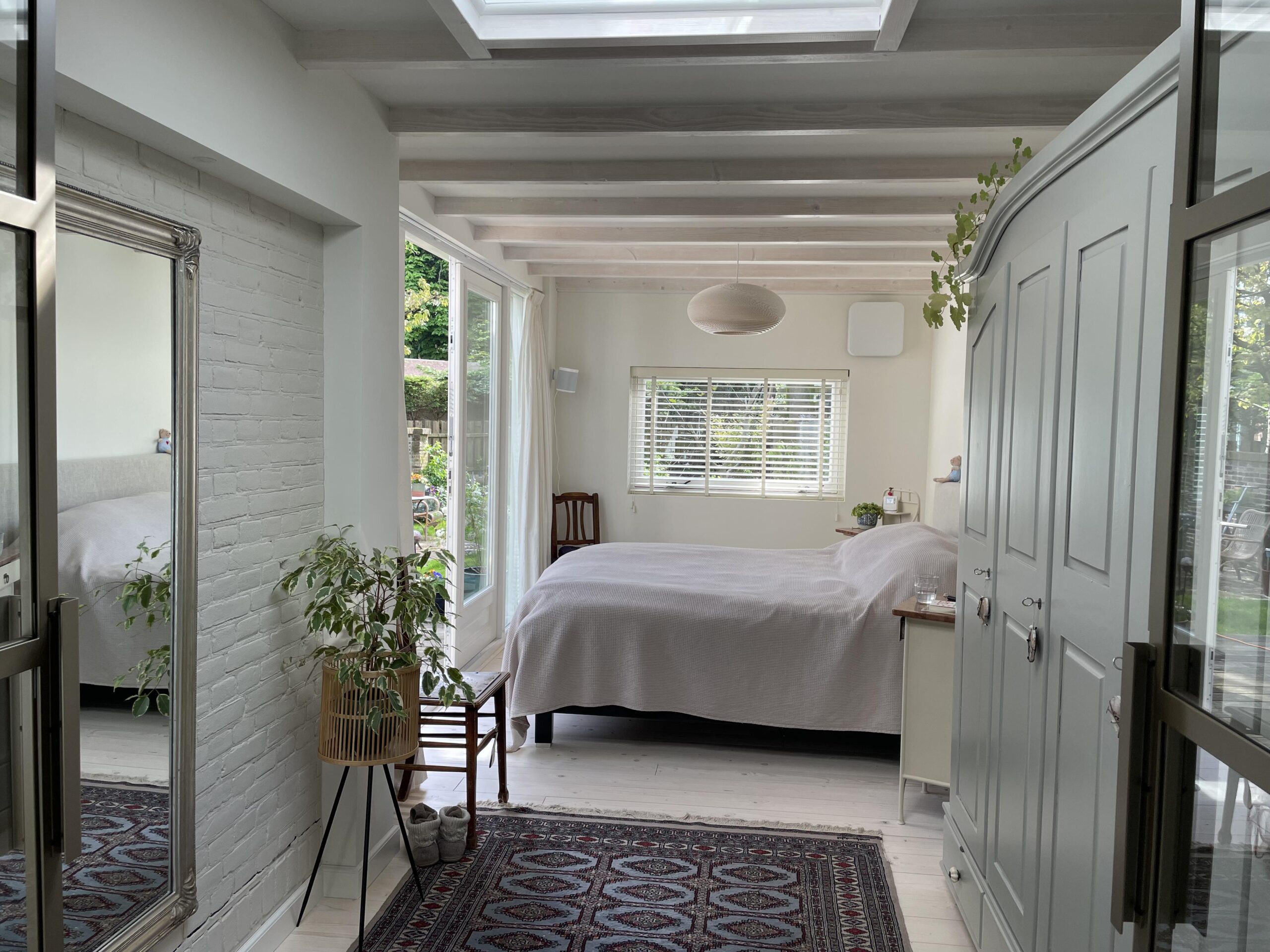 Een prachtige grote begane grond woning uit 1885 met veel originele details en met een grote diepe tuin. De nieuwe eigenaar is er eerst gaan wonen om te ervaren hoe de woning aanvoelt, wat ze wel wil behouden en wat ze graag wil aanpassen. Aan de voorzijde is nu de slaapkamer, gescheiden door een laag muurtje van de woonkamer. Aan de achterzijde is de open keuken met grote openslaande deuren naar de enorm diepe achtertuin. De badkamer zit in een soort tussenruimte. Er is nog een bergruimte middenin de woning en aan de tuin is er een berging. Met zo’n grote woning wil de eigenaar ook graag een mooie slaapkamer aan de tuin, afgescheiden van de rest van de woning.